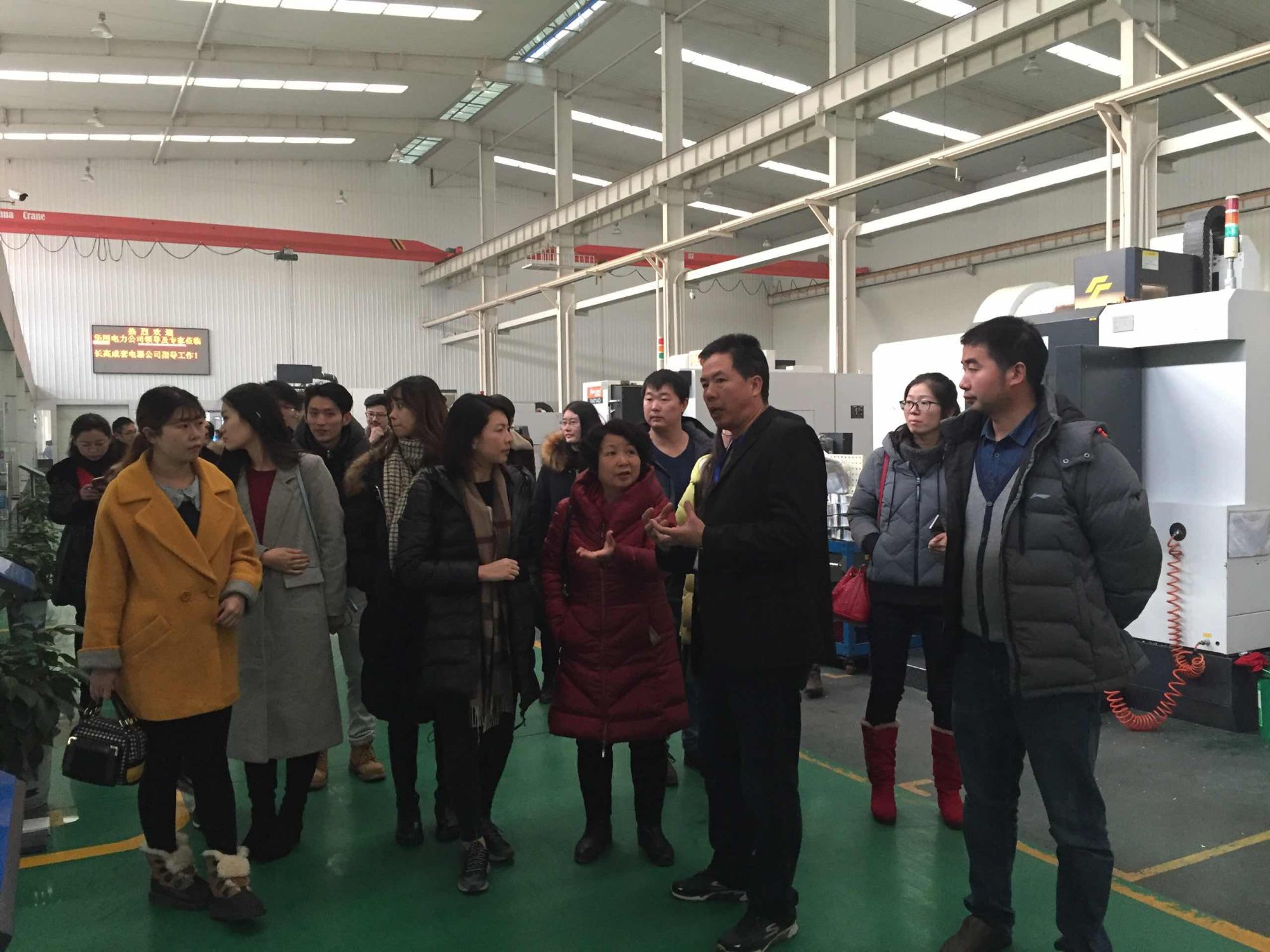 食过午餐,安放行李后,唐总随即带领果博登陆人员前往宁乡产业园参观湖南长高电气有限果博登陆和湖南长高成套电器有限果博登陆。二者同为长高集团骨干企业,前者主要生产72.5~252kV组合电器(GIS)、12~252kV断路器等;后者主要生产40.5kV及以下高低压成套开关设备、12kV高压/低压预装式变电站、12~24电缆分支箱、户外开闭所等。大家依次参观了GIS组装车间和高低压开关柜机加工、钣金以及组装车间,随行人员对大家进行了热情洋溢的接待和事无巨细的讲解,观摩过程中,遇到感兴趣的地方,大家都会驻足围观,同讲解人员进行询问和讨论,并结合自身工作予以理解、吸收。由于长时间驻足,整个参观队伍不自觉拉成一条长龙。